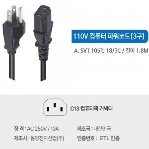 µ¿¾ç- 110V ÄÄÇ»ÅÍ ÆÄ¿öÄÉÀ̺í 1.8M (ÆÄ¿ö¼± ÄÄÇ»ÅÍ Äڵ弱 ¹Ì±¹ ÀϺ» ´ë¸¸ Àü±â¼± Àü¿ø¼± ÆÄ¿öÄڵ弱)
